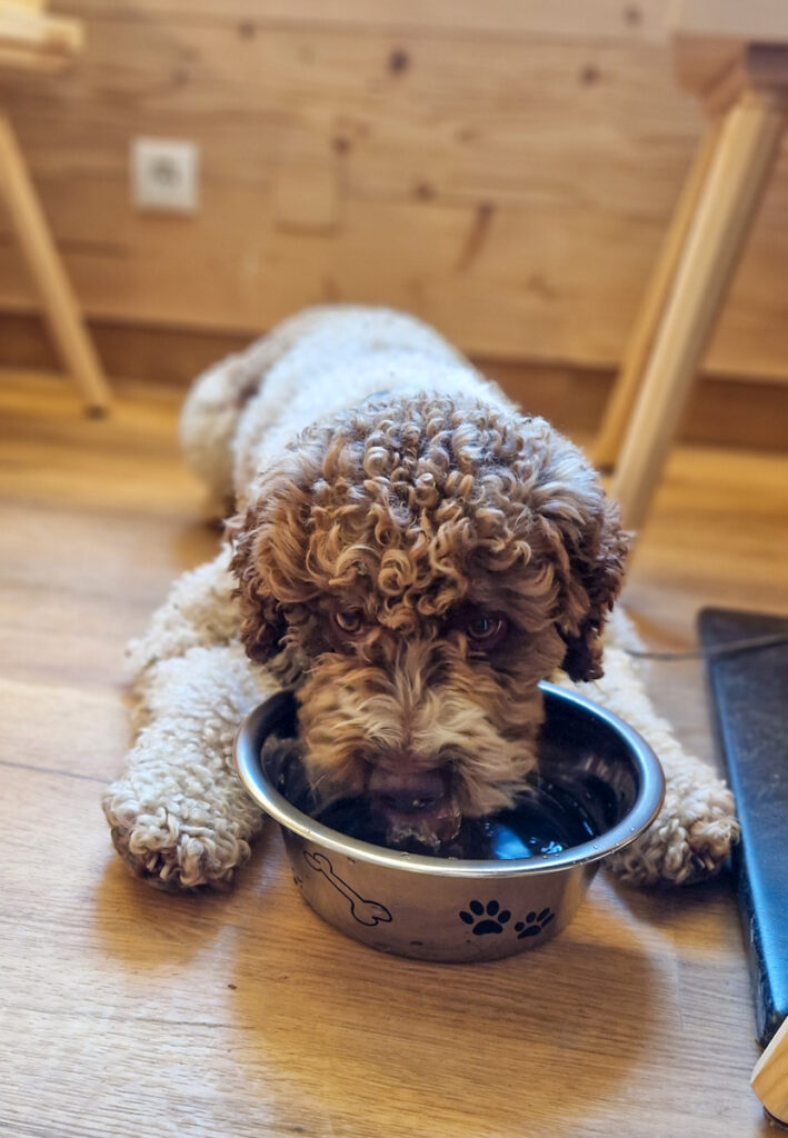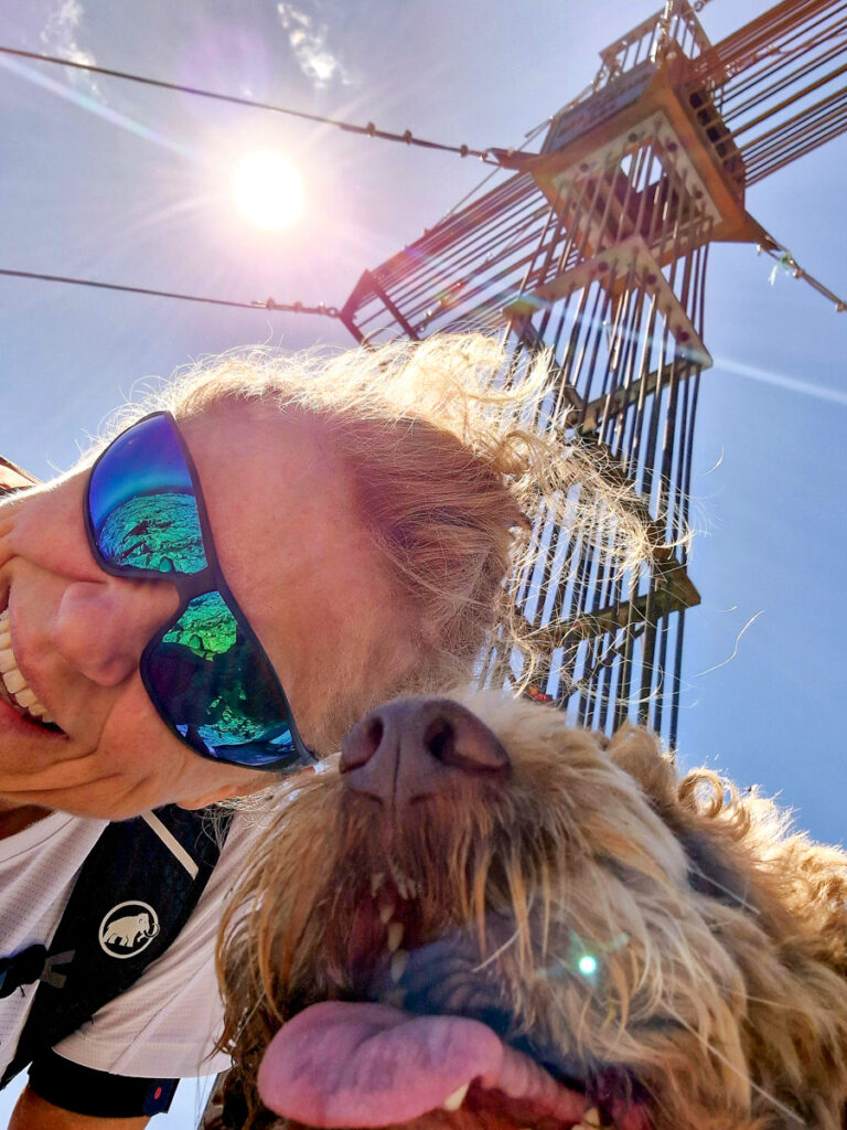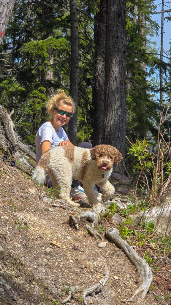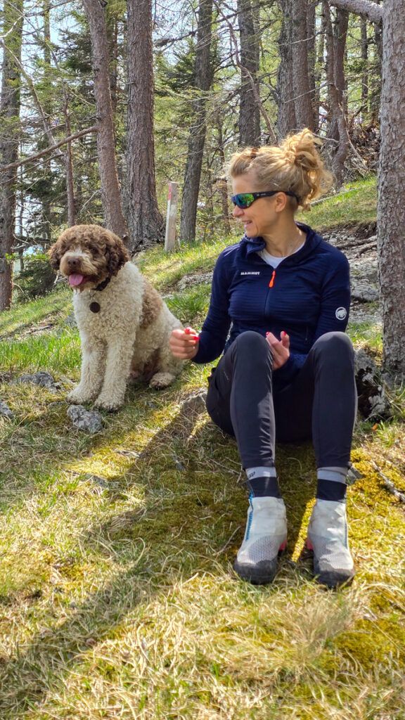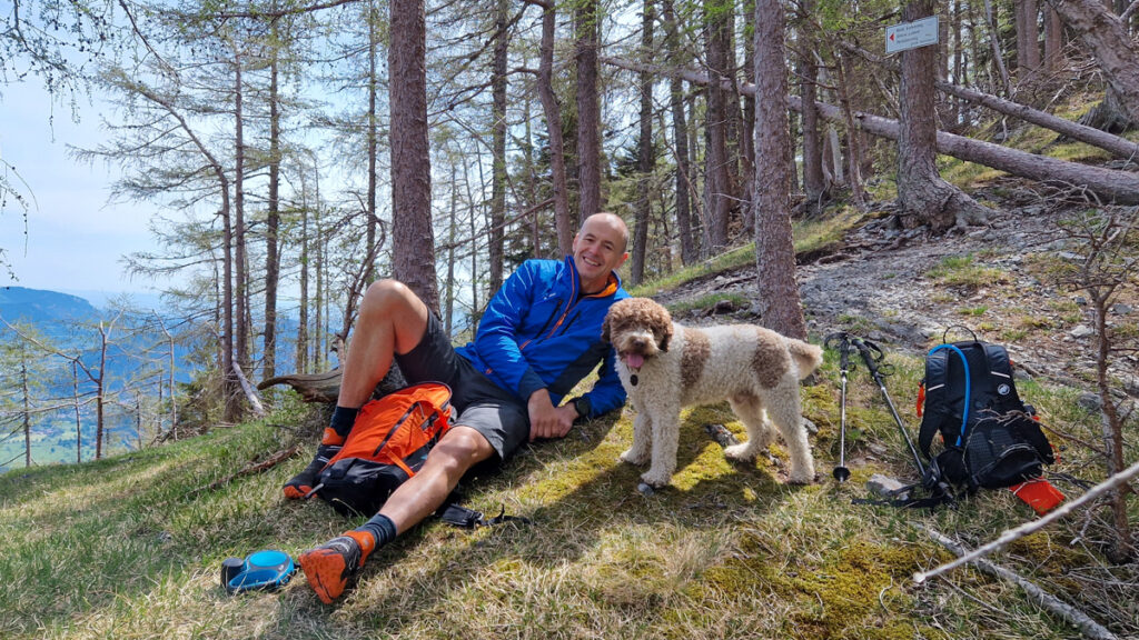 Mio schafft alle Felsstufen und kleineren Kraxeleien mühelos. Lediglich einmal muss ich ein bisserl mithelfen. Wahrscheinlich hätte er diese Felsstufe aber auch umgehen können.