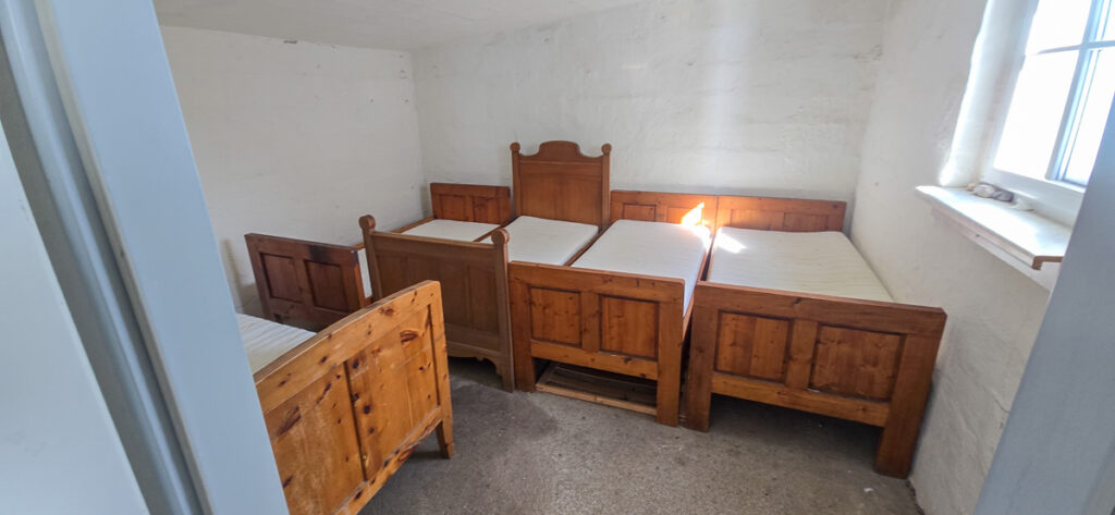 Der Winterraum IM Karl-Ludwig-Haus ist fast Luxus, mehrere Betten stehen da und ein WC gibt es auch. Tadellos! Trotzdem bleiben wir nicht lang. Heute hacke ich nicht einmal das Ingress-Portal. Wir folgen der Eisenkette Richtung Schlangenweg. Wie erwartet, verliert der Wind hier rasch an Kraft. Mir geht’s gut. Ich laufe in den neuen Schuhen bergab. Das wird ein Muskelkater werden. Heute, zwei Tage später, kann ich noch immer nicht die Stiegen geschmeidig runtergehen. Mio ist ganz gaga, er schnappt nach Schuhbändern, den Handschuhen und bellt seine Begeisterung in die kalte Luft hinaus. Immer wieder stürmt er vor, dreht um und schießt den Weg zurück herauf – ein Spiel, das wir gut kennen.